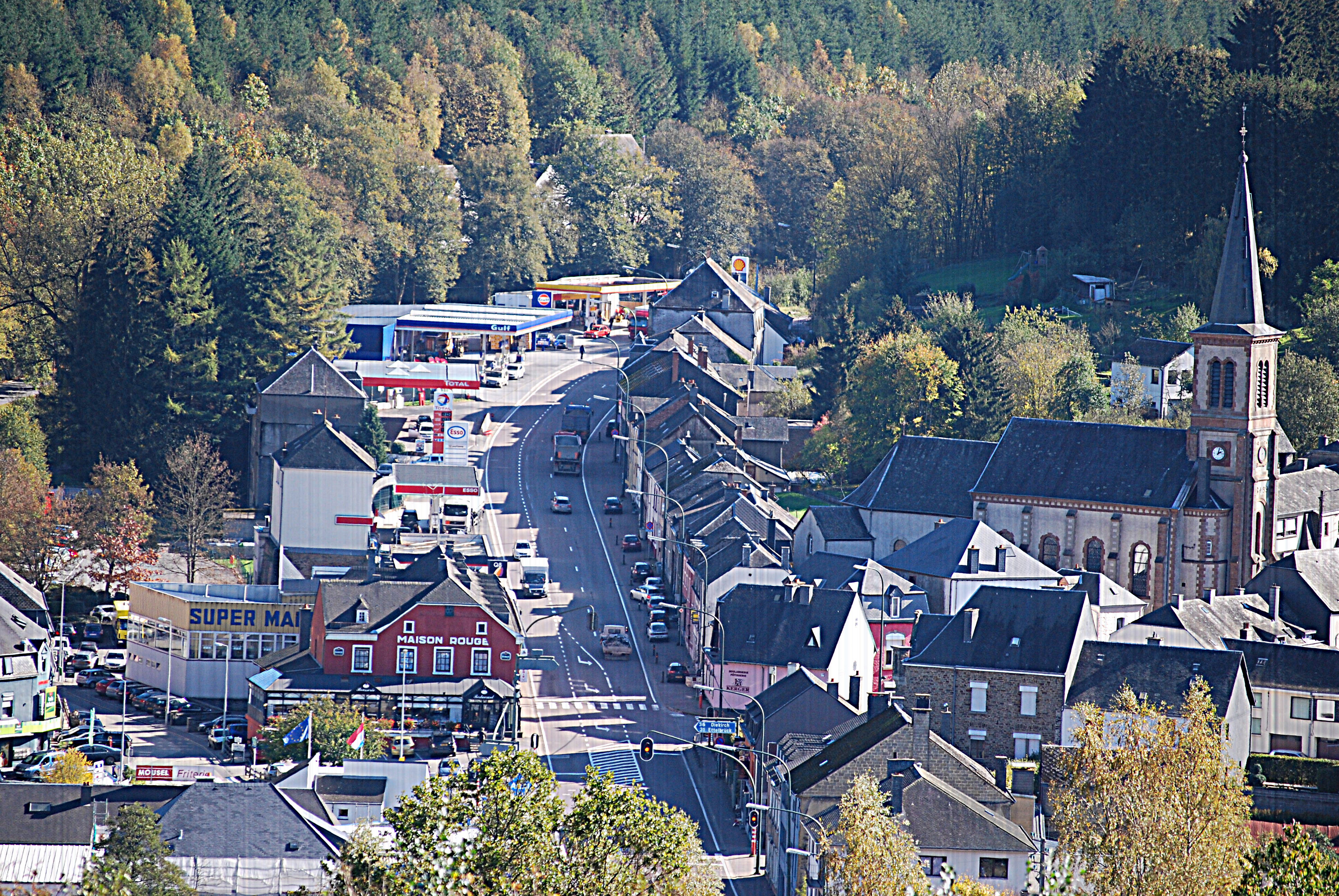 Le village est connu pour la route nationale 4 qui le traverse et fait office de frontière avec le Grand-Duché de Luxembourg. Le long de celle-ci, côté luxembourgeois, se trouvent bon nombre de station services qui sont la caractéristique de l'endroit, bien qu'elles se trouvent donc sur le territoire de Rombach, le village luxembourgeois jouxtant Martelange et avec lequel elle forme un continuum bâti.